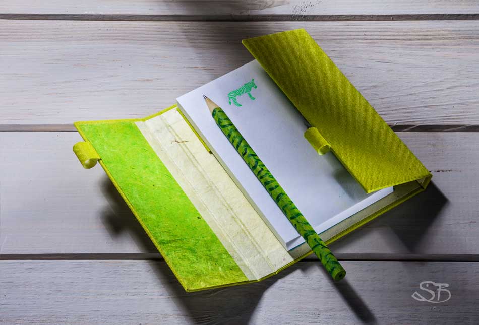 kleines Buchunikat mit Zebra-Block und bemaltem Bleistift"