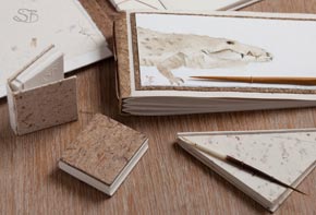 Verschiedene Buchobjekte aus eigenen, geschöpften Papieren; mit Tier-Aquarellen