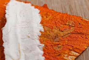 Weiße Papierfeder aus Maisblättern und Baumwolle - mit Pigmenten eingefärbtes, geschöpftes Papier